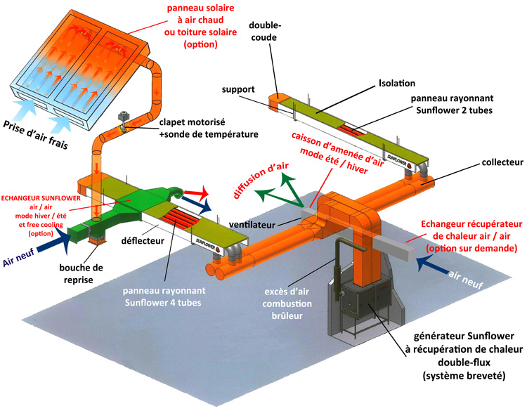 1975 premier choc pétrolier, AIR TECHNIQUE FRANCO-SUISSE conçoit et développe SUNFLOWER un système de chauffage rayonnant basé sur la circulation d’air chaud en circuit fermé. Ce procédé remarquable affiche des performances record qui suscitent un intérêt grandissant chez tous les clients de la société. En 45 ans c’est plusieurs centaines de milliers de m2 d’ateliers, de gymnases, de halls d’exposition et de magasins qui sont chauffés par le procédé SUNFLOWER.